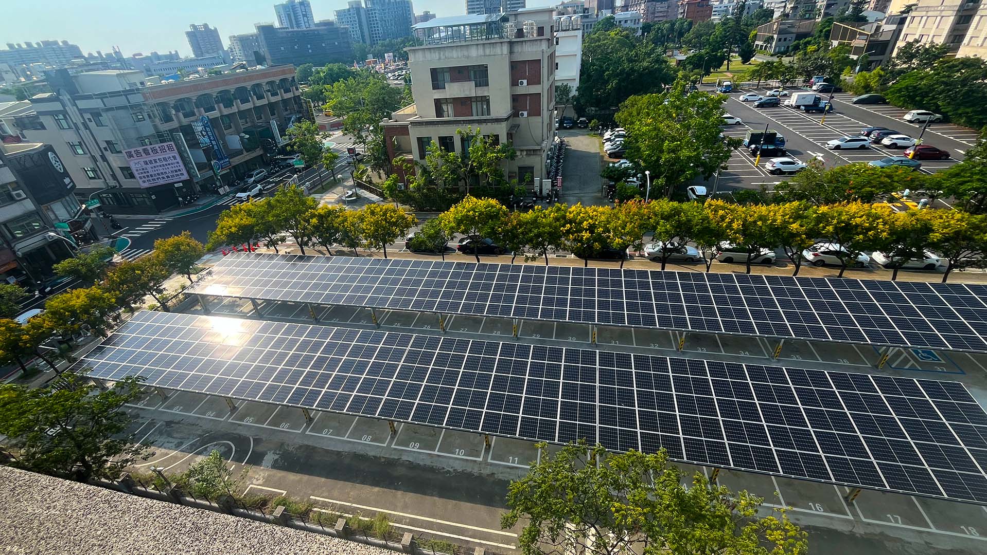 茂鴻電力針對場地需求,首先進行排水改善與水泥鋪面工程,根除積水困擾,並採用高規格抗風鋼構搭建太陽能設施,總裝置容量達 238.625 kW。設計上採「一地多用」概念,上方模組發電,下方則規劃為教職員遮陽停車棚與師生多元球場,不僅讓愛車免受曝曬,更增加了風雨無阻的運動空間。本案成功將閒置荒地華麗變身為綠能新亮點,完美體現茂鴻電力在結構安全、空間活化及ESG永續實踐上的專業實力。