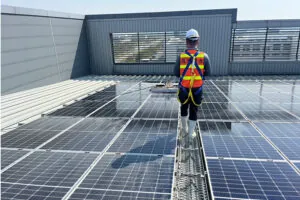 艾卡爾生技,位於臺南科技工業區的生物科技公司,對其888平方公尺的廠房進行了綠色升級。舊有的屋頂鋼浪板經過改造,安裝了新浪板和太陽能模組,總容量達90KW。這項創新不僅提高了工作安全性,還在不中斷生產的情況下完成,有效降低了廠房內的溫度和噪音,實現了節能減碳。